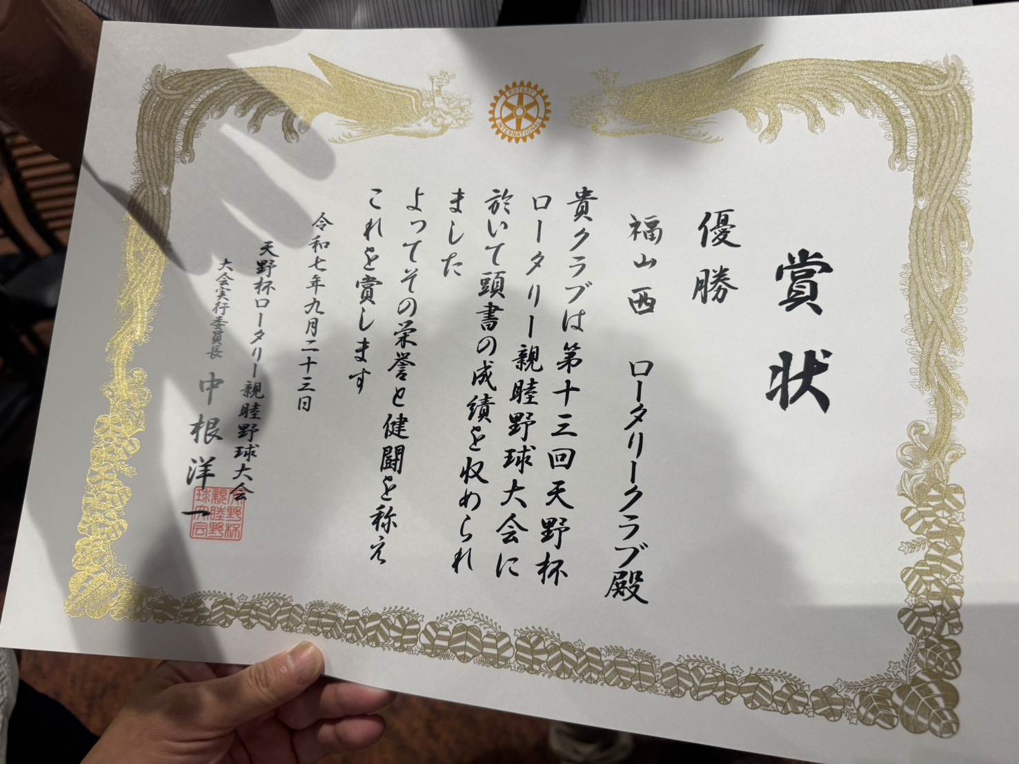 9月23日(火・秋分の日)に開催された「第13回天野杯ロータリー親睦野球大会」にて、見事優勝いたしました。